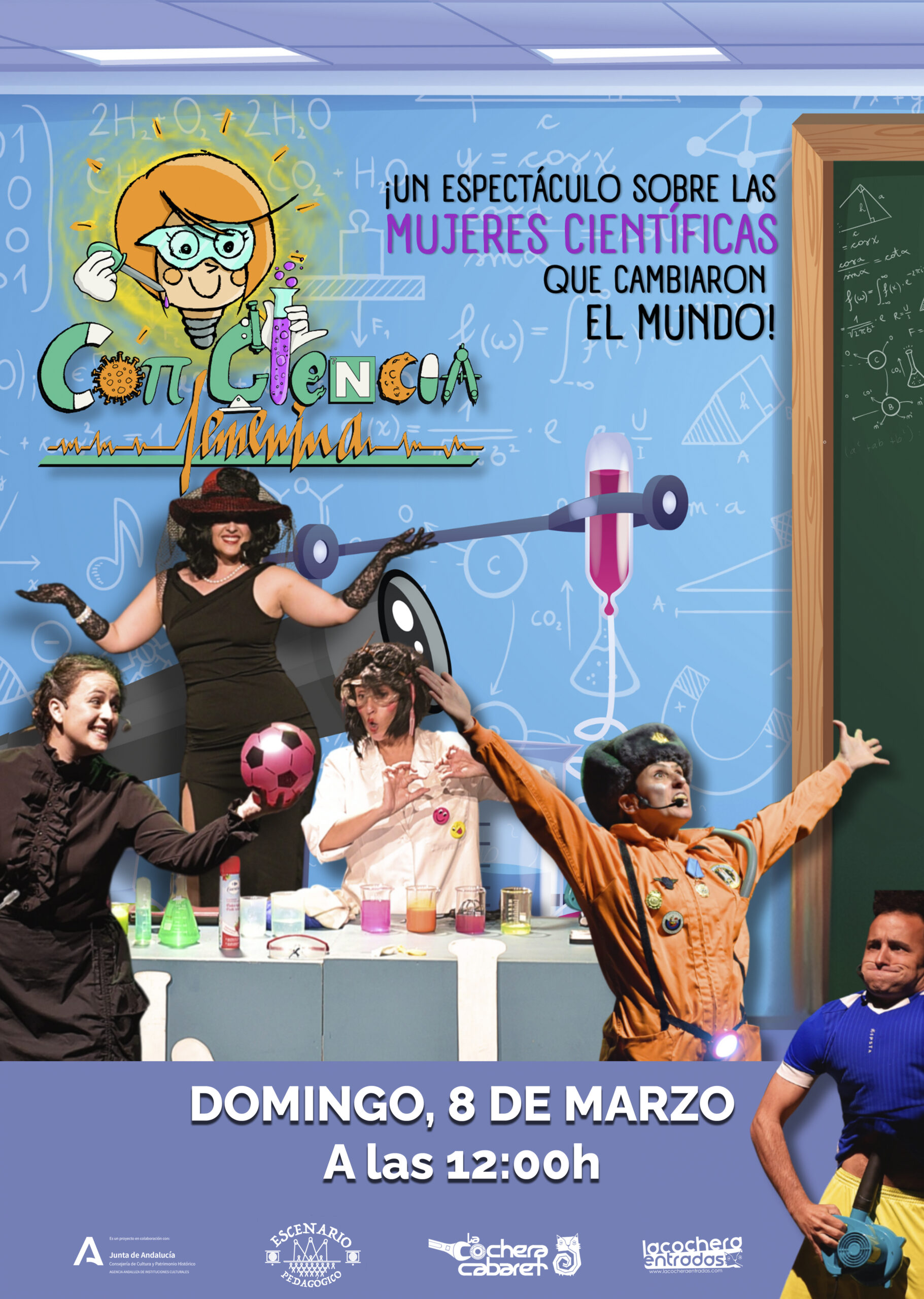 CONCIENCIA FEMENINA Infantil / Familiar - La Cochera Cabaret Domingo 08 de marzo - 12:00 h MÁLAGA Un espectáculo sobre las mujeres científicas que cambiaron el mundo. Fuera estereotipos. Mujeres...